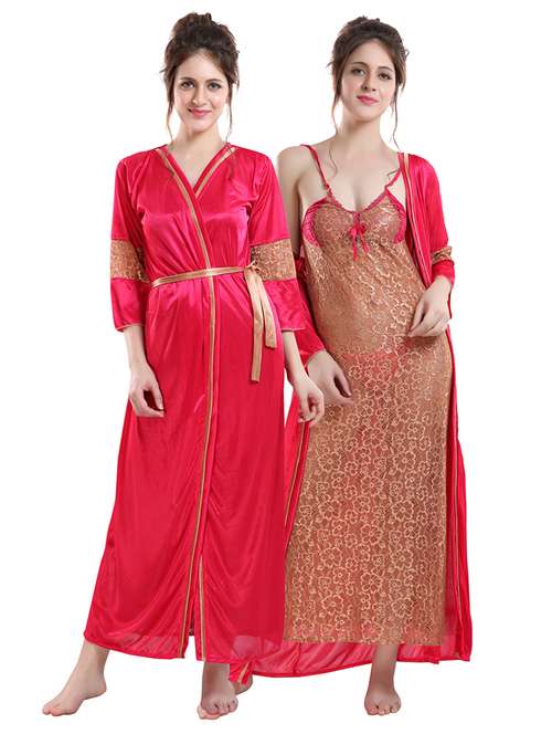 Make your night sexy with this Satin Nighty Sets / Nighty with Robe. br The Robe is made up of Satin with net borders on sleeves.