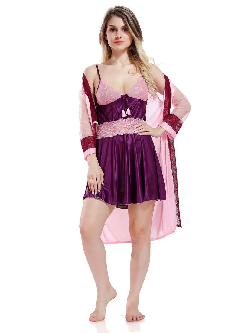 - » solid sleepwear robe with babydoll set