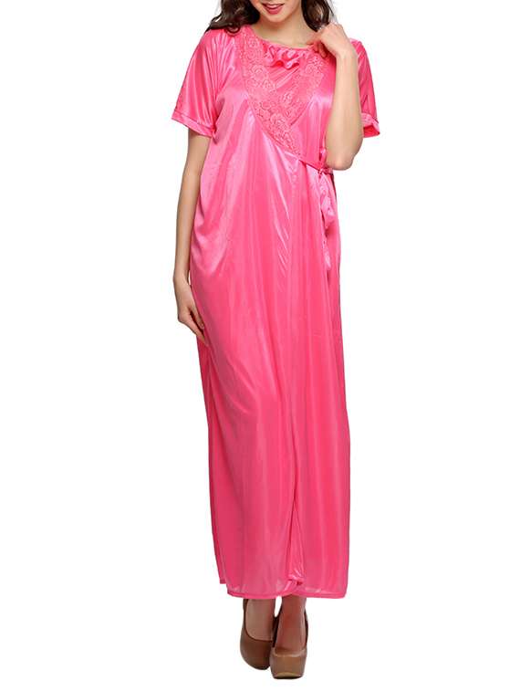 pink solid sleepwear robe set