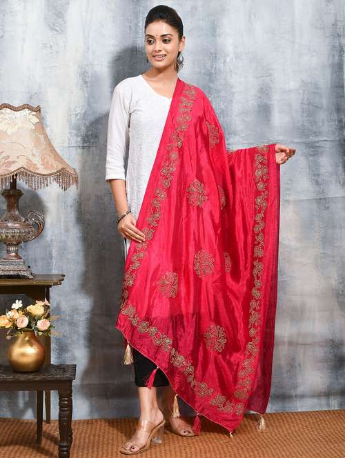 women solid with work embroidered dupatta  - 21965818 - Very Small Image - 1