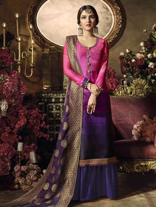 - » embroidered semi-stitched suit
