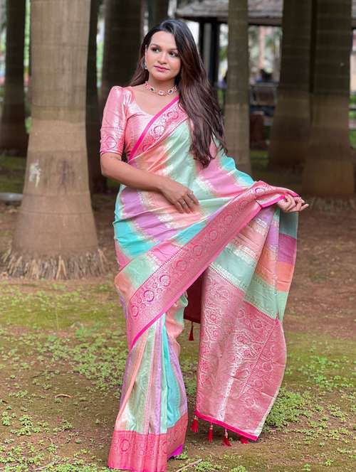 Soft Silk Saree With Zari Weaving Meenakari Border