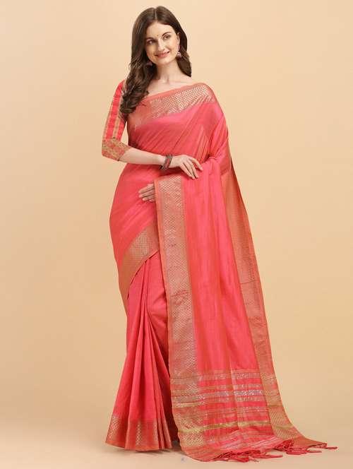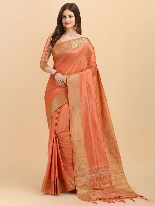 - » women's self design coral colored saree with blouse