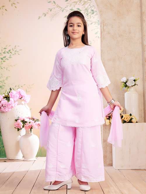 girls embroidered kurta palazzo set with dupatta