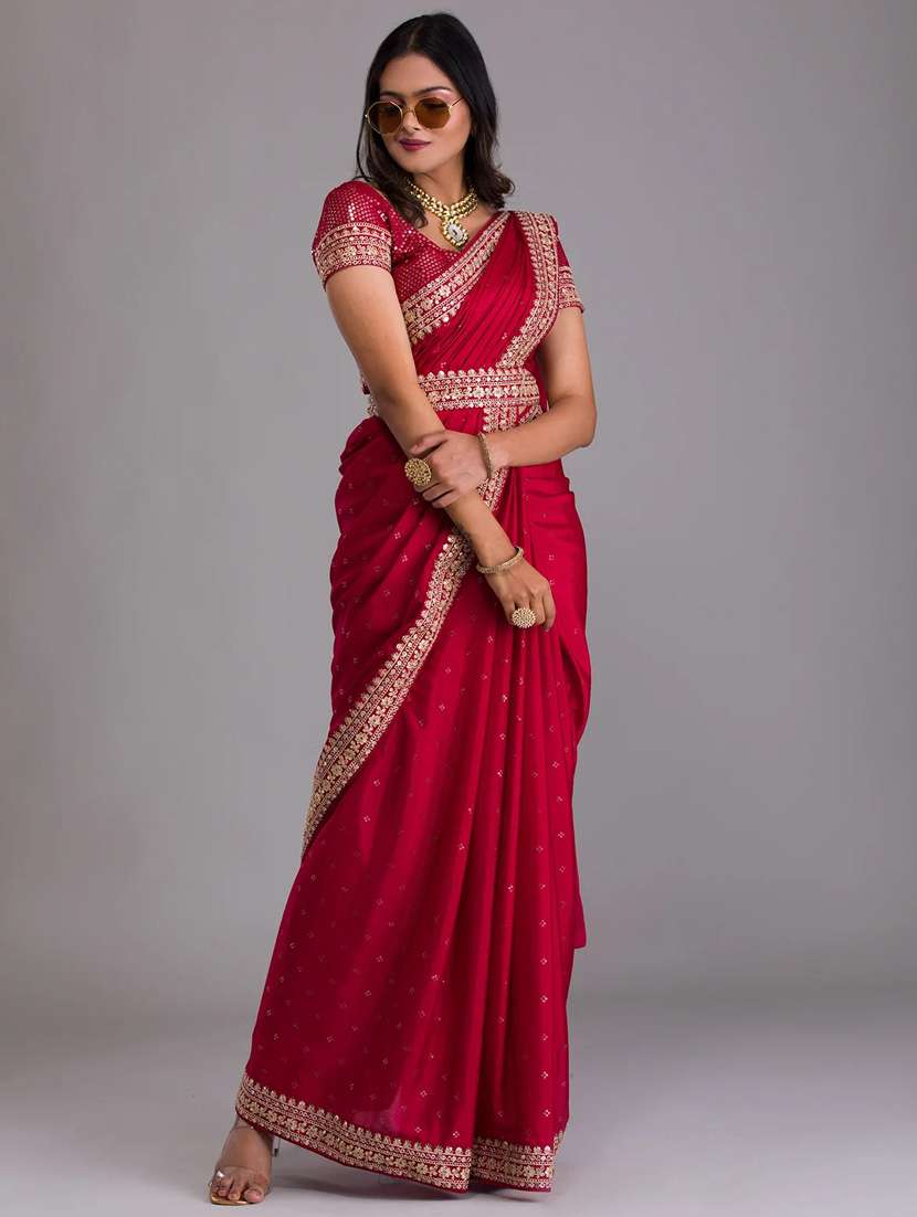 - » self design embroidered saree with blouse