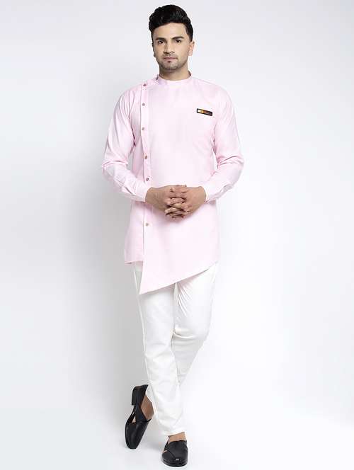 - » pink solid asymmetric kurta pajama ethnic set
