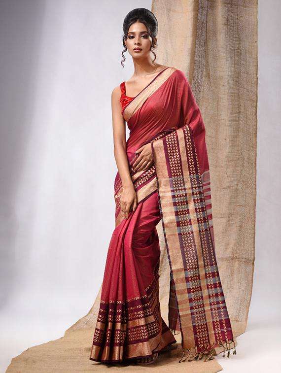 women self design handloom saree with blouse