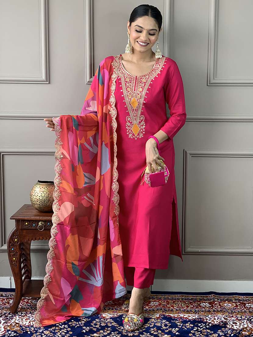 - Find gorgeous sets of ethnic wears in trending designs in pink colors suitable for festive wear of occasions.