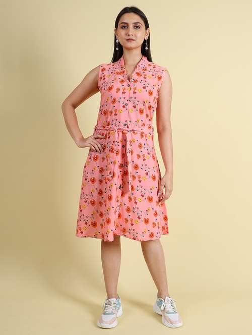 women pink florals printed a-line dress - 21137927 - Very Small Image - 1