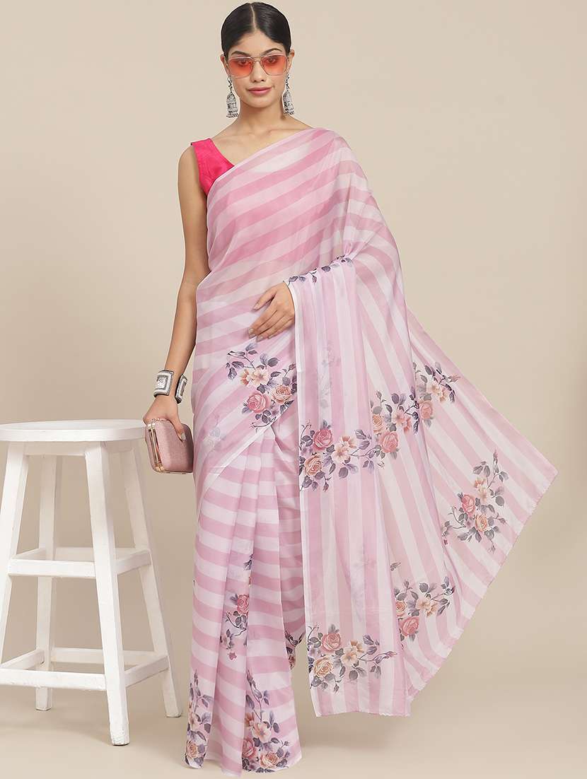 - » women's floral pink colored saree with blouse
