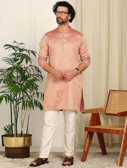 Woven Straight Kurta, long sleeves, two side pockets, a straight hem, and side slits for added comfort and style.