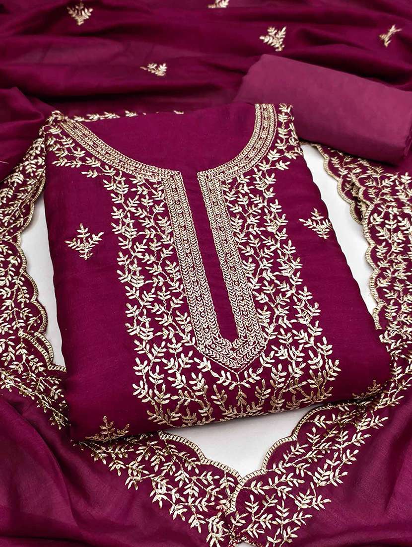 - Look ultra gorgeous in unstitched suits from Peachmode and grab these beautiful suits in magenta colour.