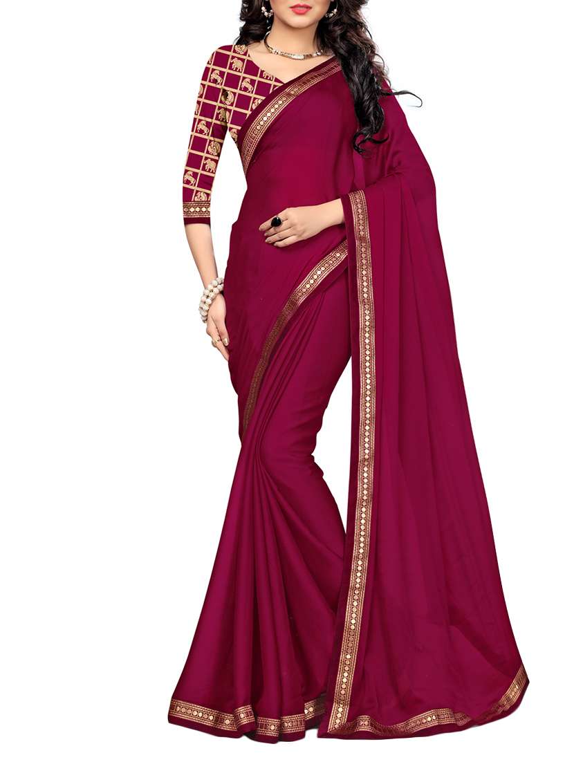 magenta silk blend bordered saree with blouse