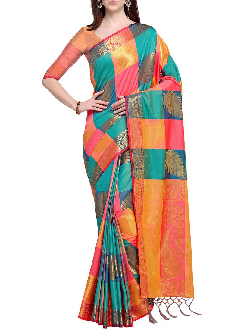 - » checkered leaf motif banarasi silk saree with blouse