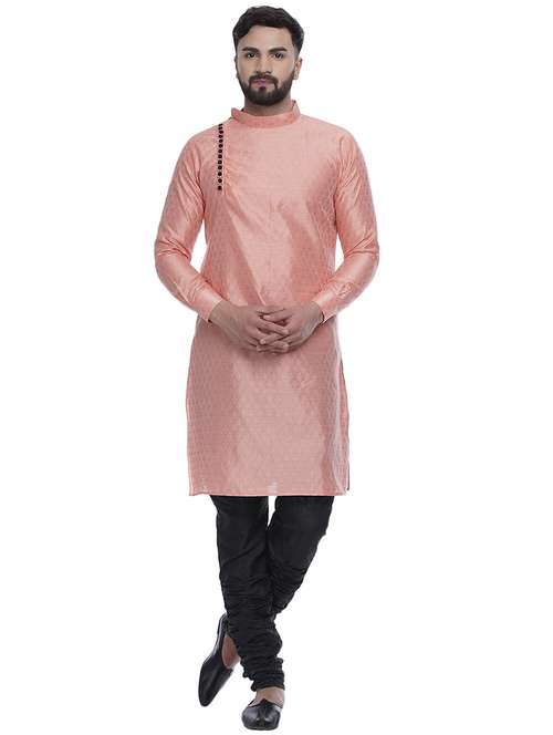 - » pink jacquard silk blend long kurta