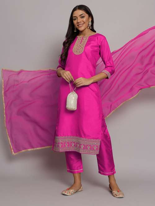 - Find gorgeous sets of ethnic wears in trending designs in pink colors suitable for festive wear of occasions.