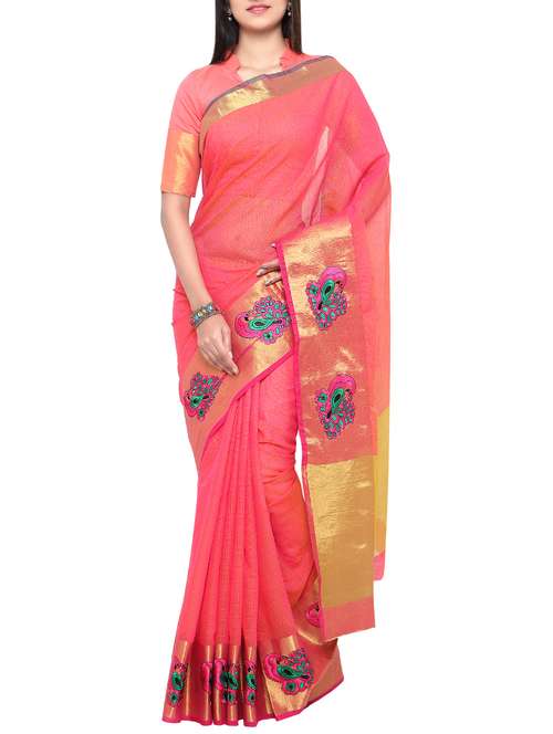 pink bordered saree with blouse - 14123821 - Very Small Image - 1