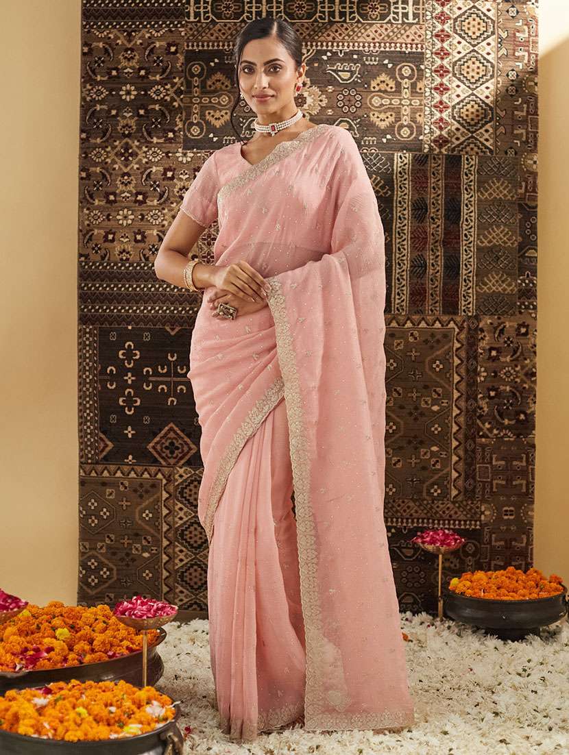 women solid with work embroidered saree with blouse - 21949753 - Very Small Image - 1