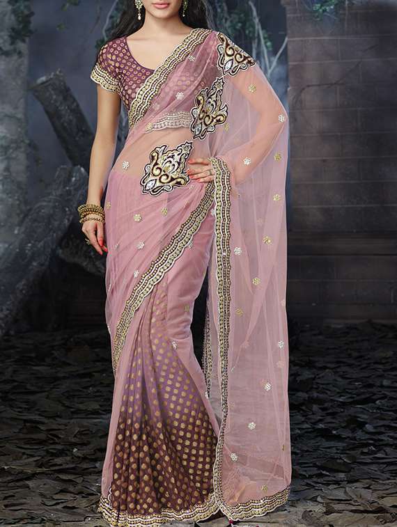 pink silk embroidered saree with blouse