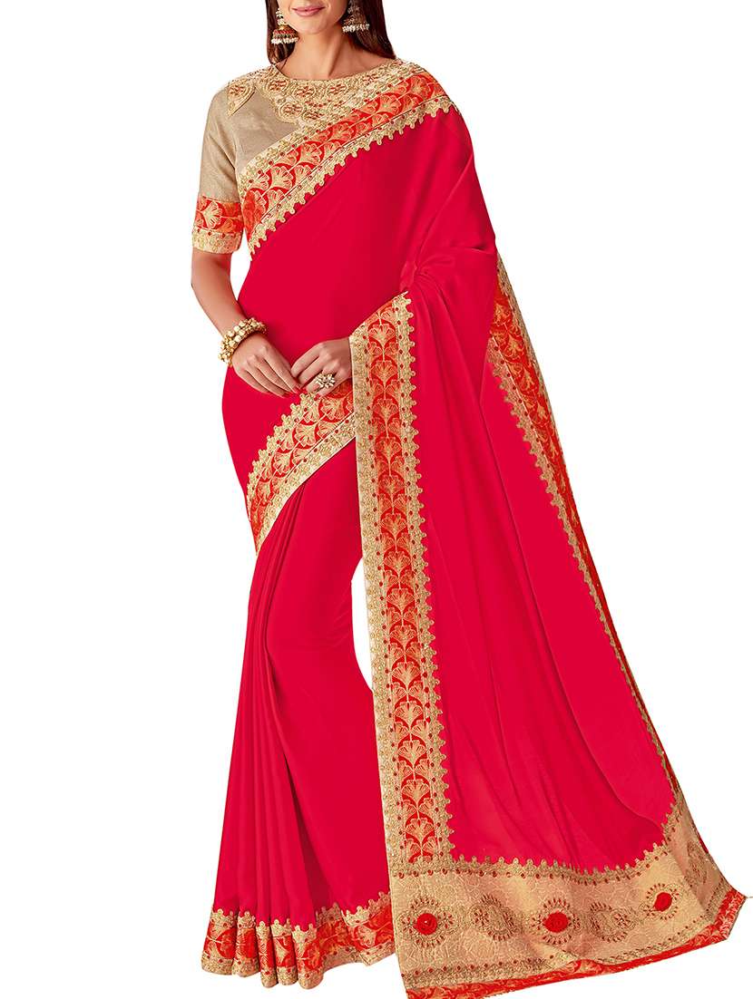 - » embroidered border solid saree with blouse