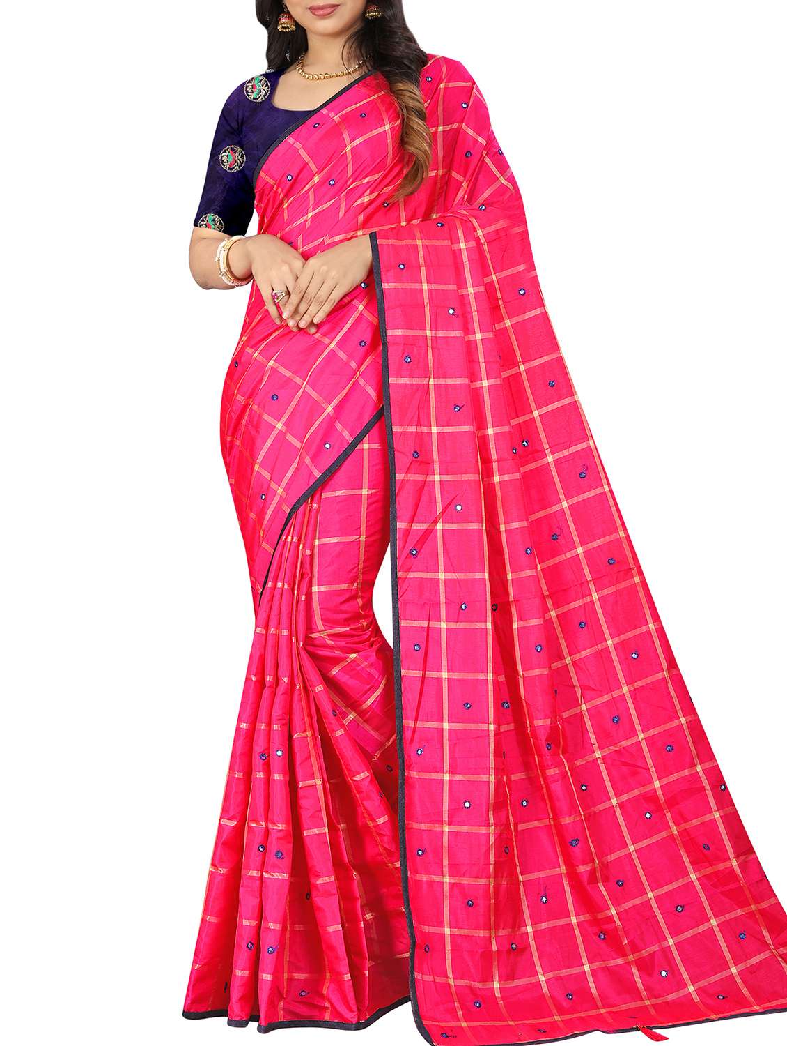 - » checkered mirror work embroidered saree with blouse