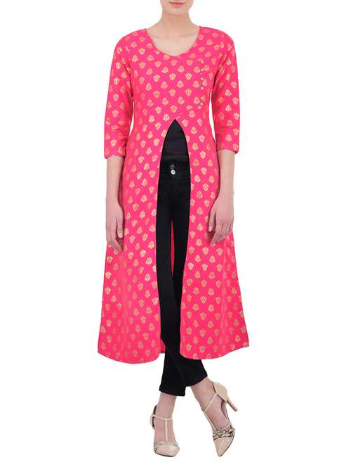 - » pink silk high slit kurta