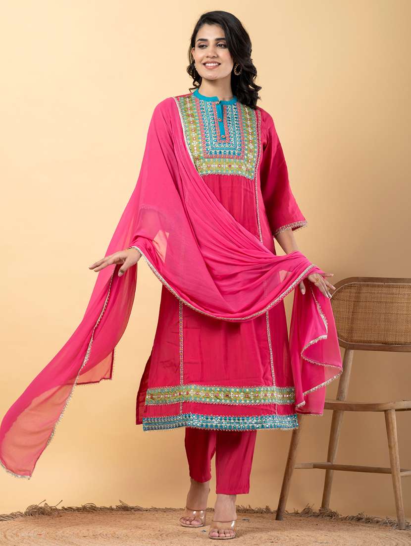 - Find gorgeous sets of ethnic wears in trending designs in pink colors suitable for festive wear of occasions.