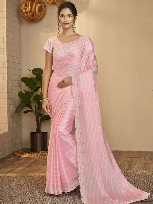 - » pink leheriya bordered saree with blouse