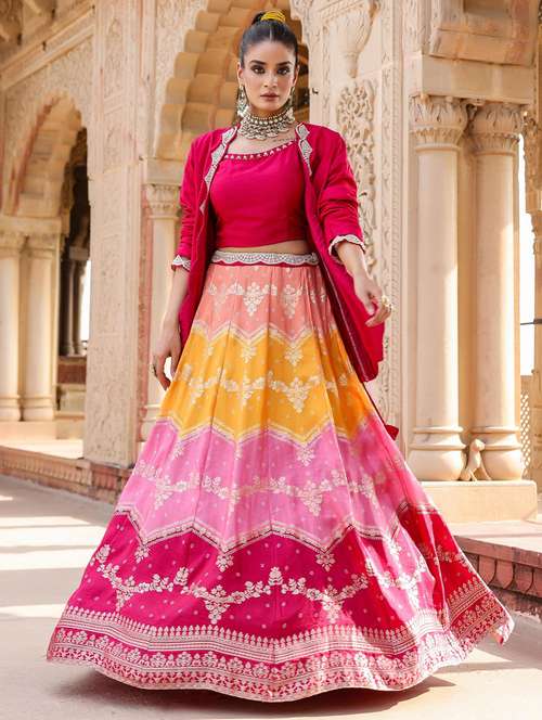 - » pink flared stitched lehnga with shrug