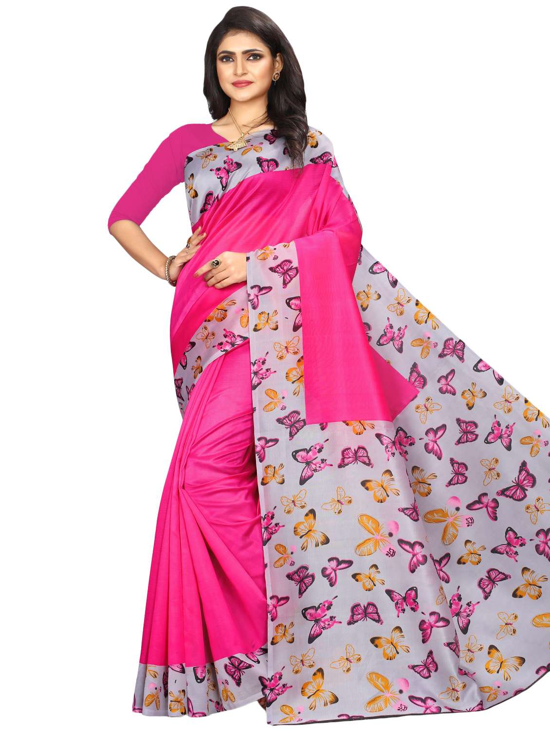 - » women's bordered pink colored saree with blouse