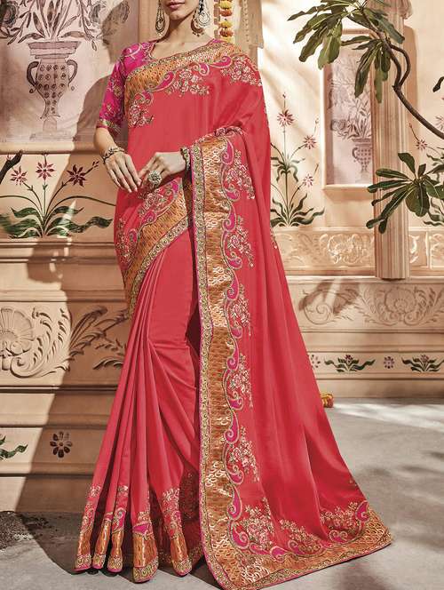 - » floral embroidered saree with blouse