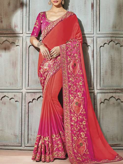 floral embroidered saree with blouse