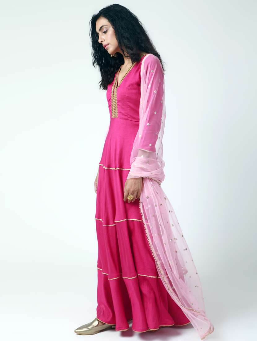 - » flared tiered with gota border suit set