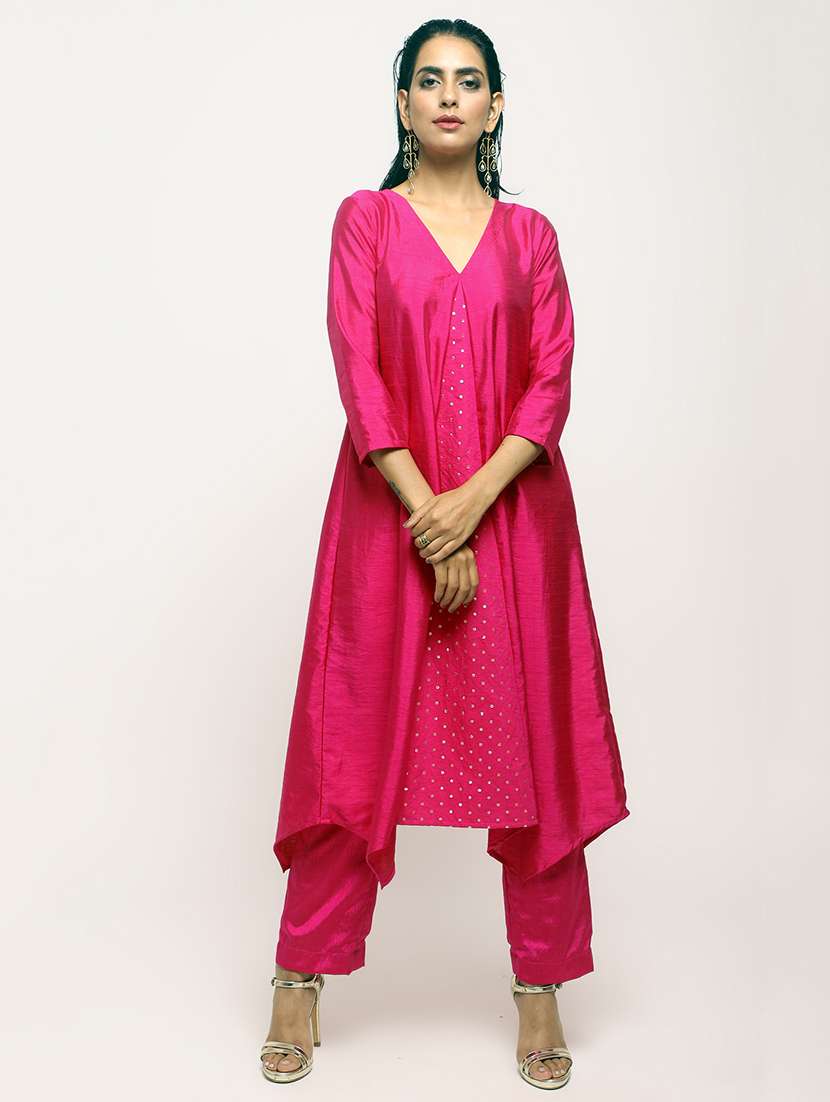 foil printed silk kurta with pant set - 15807840 - Very Small Image - 1