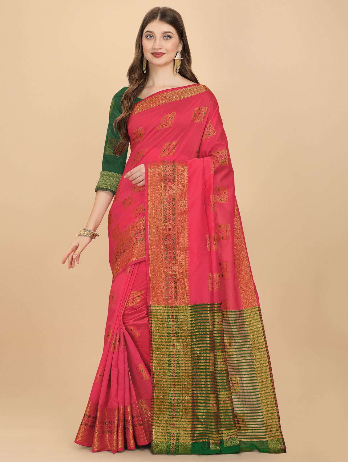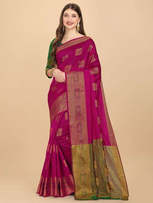 - » pink self design woven saree with blouse