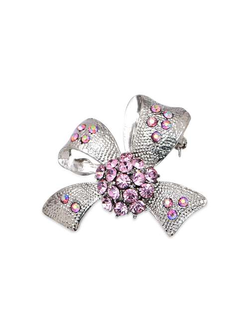 silver plated pink bowknot brooch