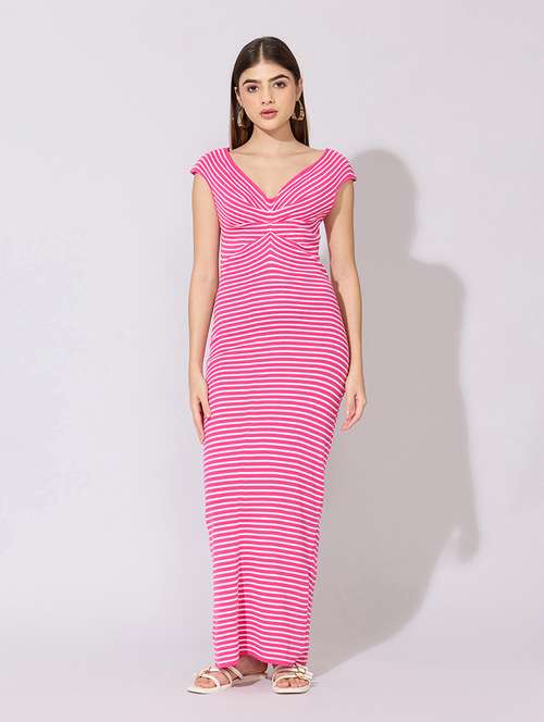 women striped sleeveless bodycon dress