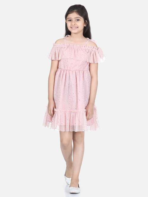 girls shoulder strap cold shoulder frock