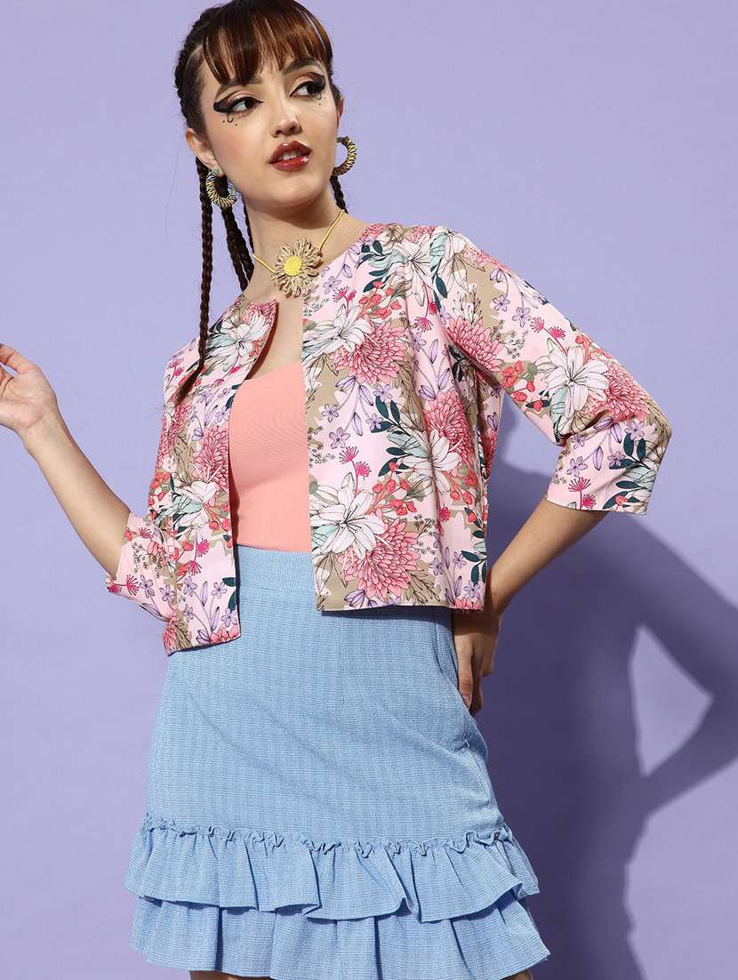 - » pink floral print crop shrug