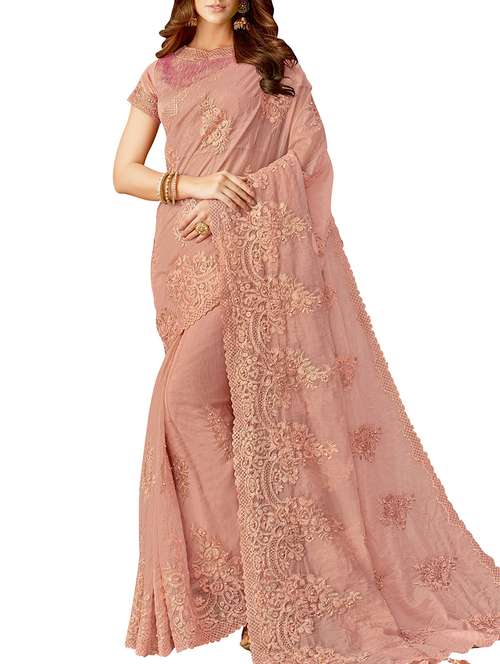 floral embroidered tissue saree with blouse
