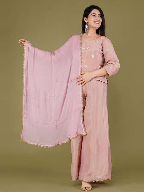 - Browse through the latest range of ethnic sets for women with tailored sleeve designs with embroidered works.