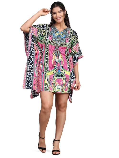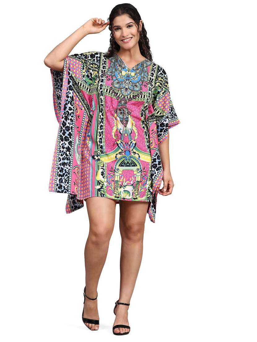 - » pink printed v-neck relaxed fit kaftan dress