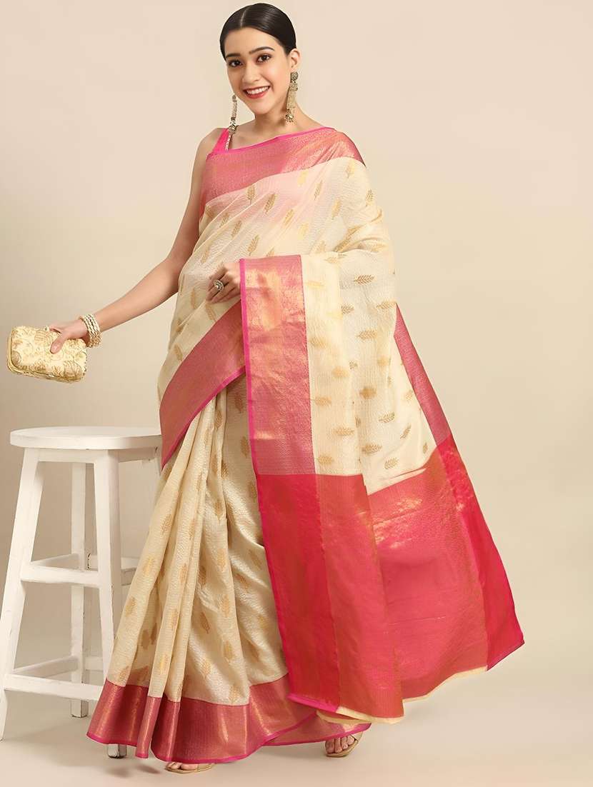 - » women self design bordered saree with blouse