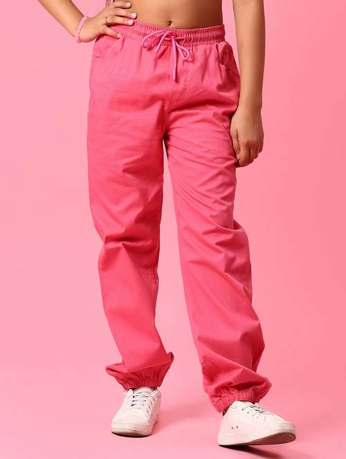 girls solid mid rise relaxed fit jogger