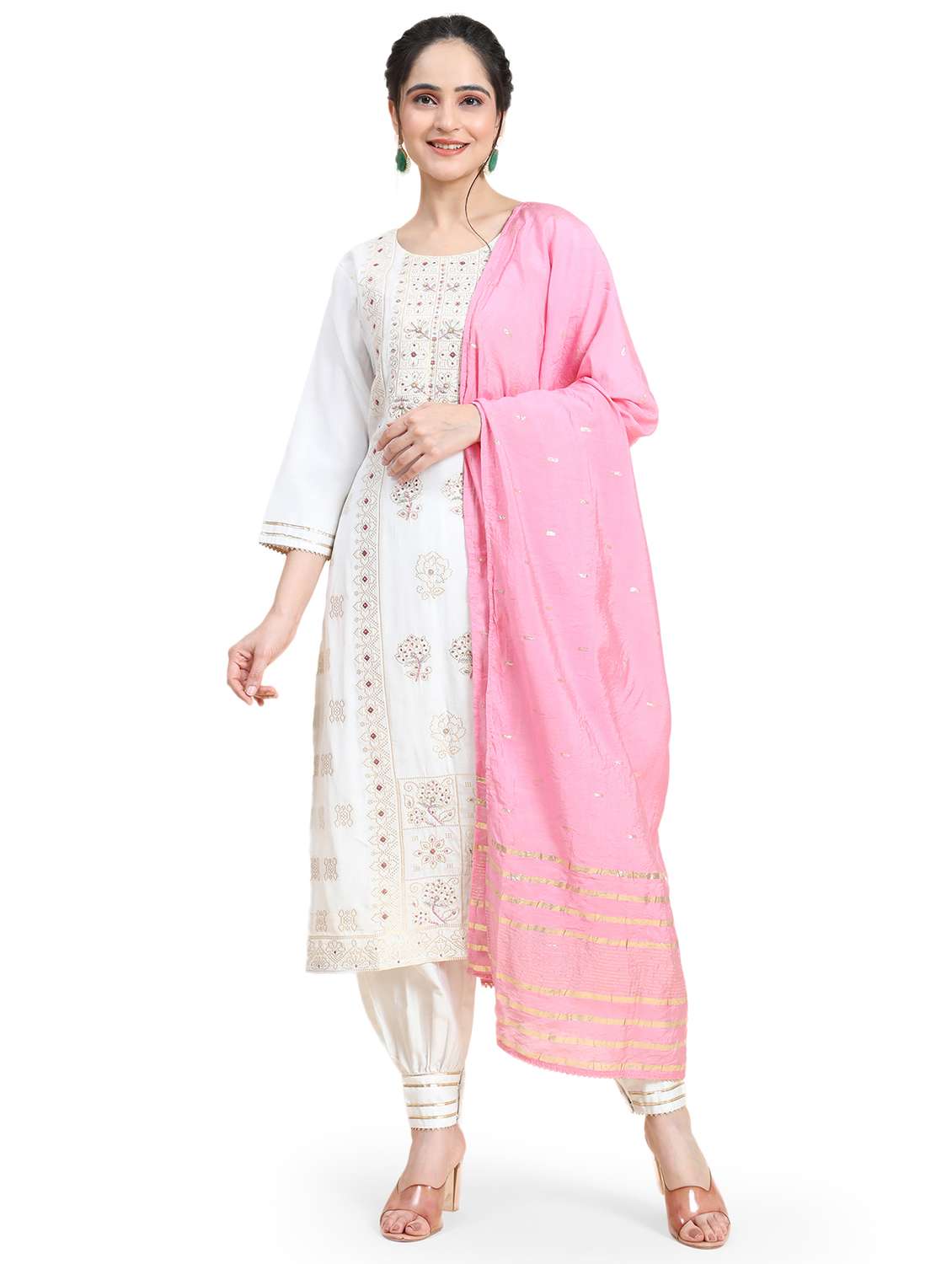 - Find gorgeous sets of ethnic wears in trending designs in white colors suitable for casual wear of occasions.