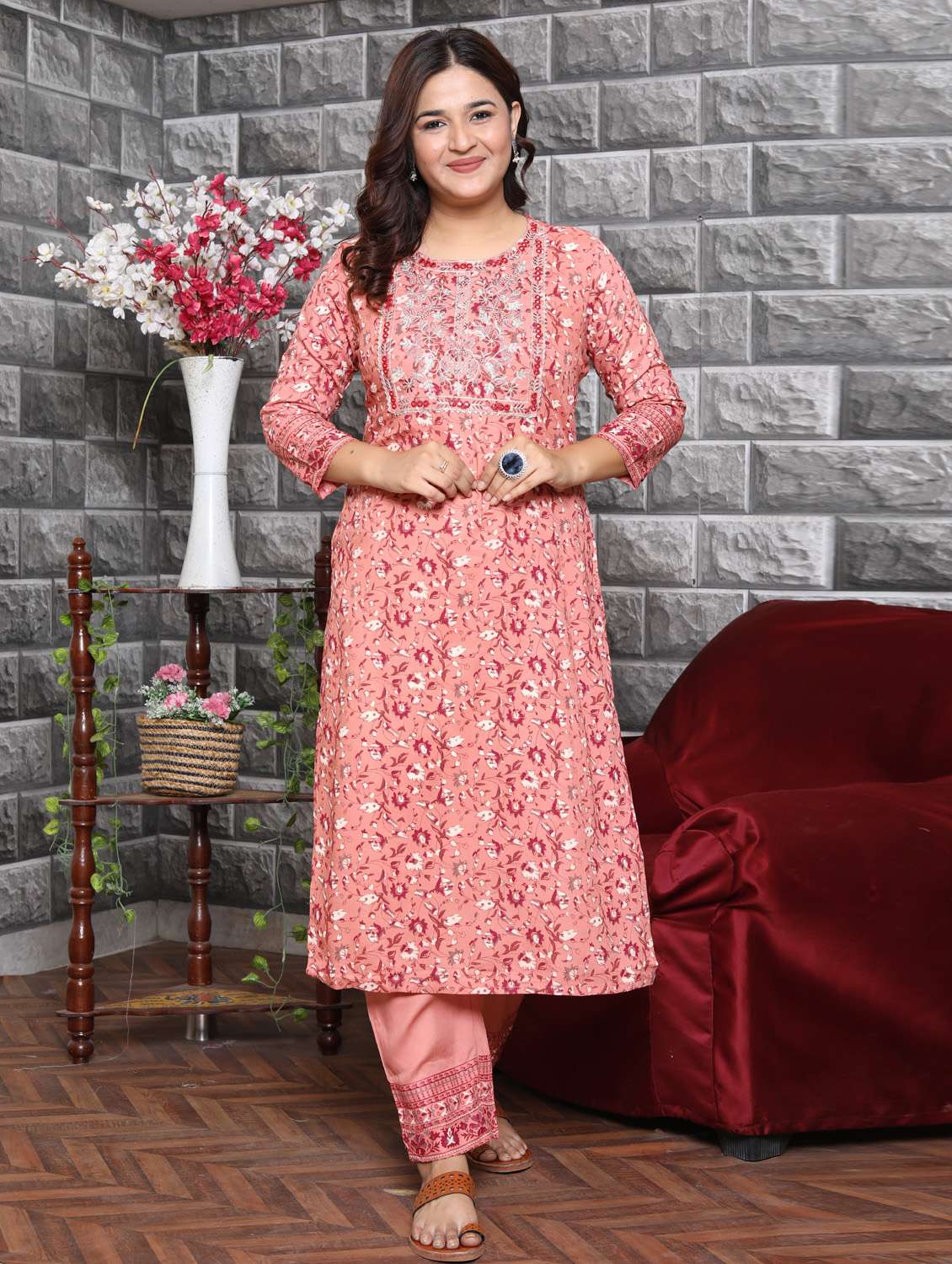 - » pink colored kurta pant set