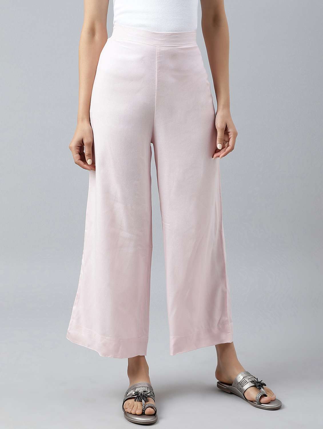 pink viscose palazzos