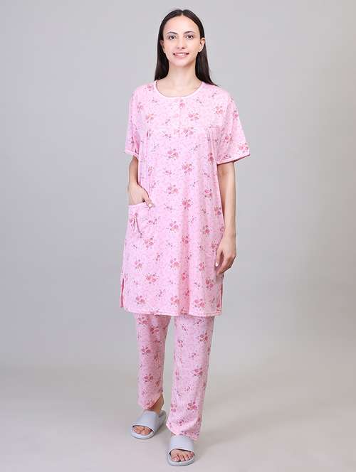 - After a long tiring day, slip into something homely, shop for the all-new collection of nightwear sets for ladies in FREESIZE sizes and gorgeous pink designs and colors.