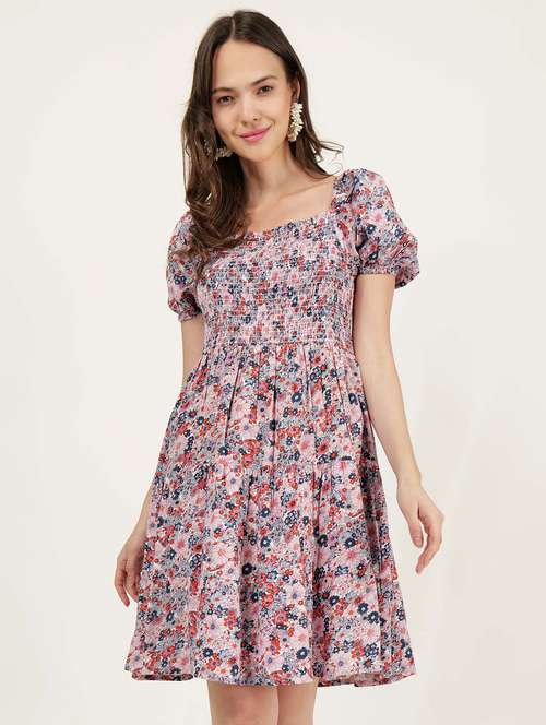 - » women square neck floral printed tiered dress