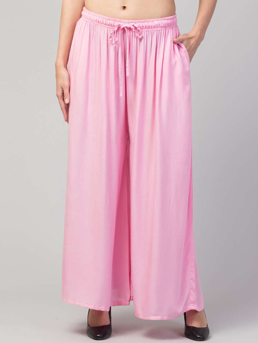 women mid-rise solid wide-leg palazzo